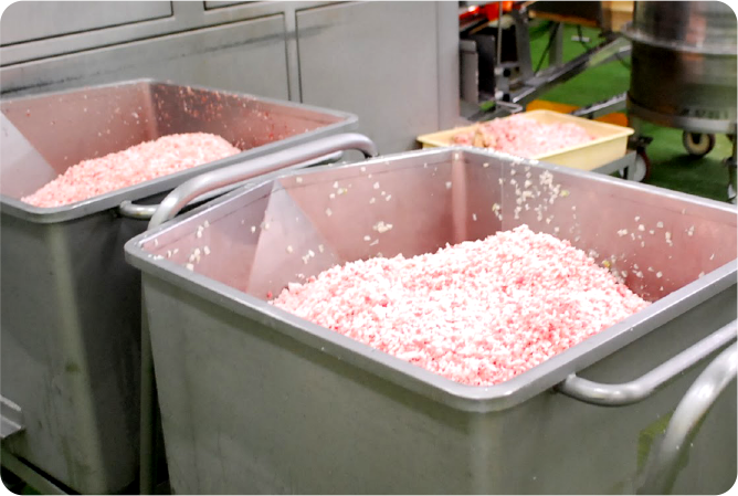 551HORAIでは、素材そのままの美味しさを味わっていただくために厳選素材を使用し、保存料などは入れていません。味付けもシンプルにすることで、素材本来の美味しさをより引き出します。また豚まんや焼売の味を引き立てる「カラシ」、餃子に旨味を加える「タレ」など、味や鮮度を追求した結果、毎日自社生産し、出来立てをお届けしています。