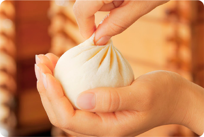 551HORAIでは、創業当時から変わらず、ひとつひとつ手作りしています。熟練した技と愛情をいっぱいに詰め込み、色白でまんまる・ふっくらに包みあげます。