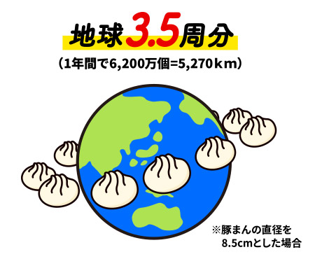 神戸元町で人気のあった豚饅頭に、手軽に食べることができて、その上ボリュームがあるというのは、いかにも大阪人の好みに会いそうではないかと直感的に感じていた。神戸のものは小ぶりで小籠包に近かったが、蓬莱では日本人好みの味つけで、やや大きめに仕上げることで大阪人の嗜好を意識した。商品名も豚饅頭ではなく、「豚まん」とした。ズバリとわかりやすいネーミングであるうえ、言葉としての歯切れがよく、口に出しやすい。また関西では一般的に「肉=牛肉」を表します。だから「肉まん」というと牛肉の饅頭を指してしまうので、豚肉の入った饅頭である肉まんのことを「豚まん」というようにもなりました。