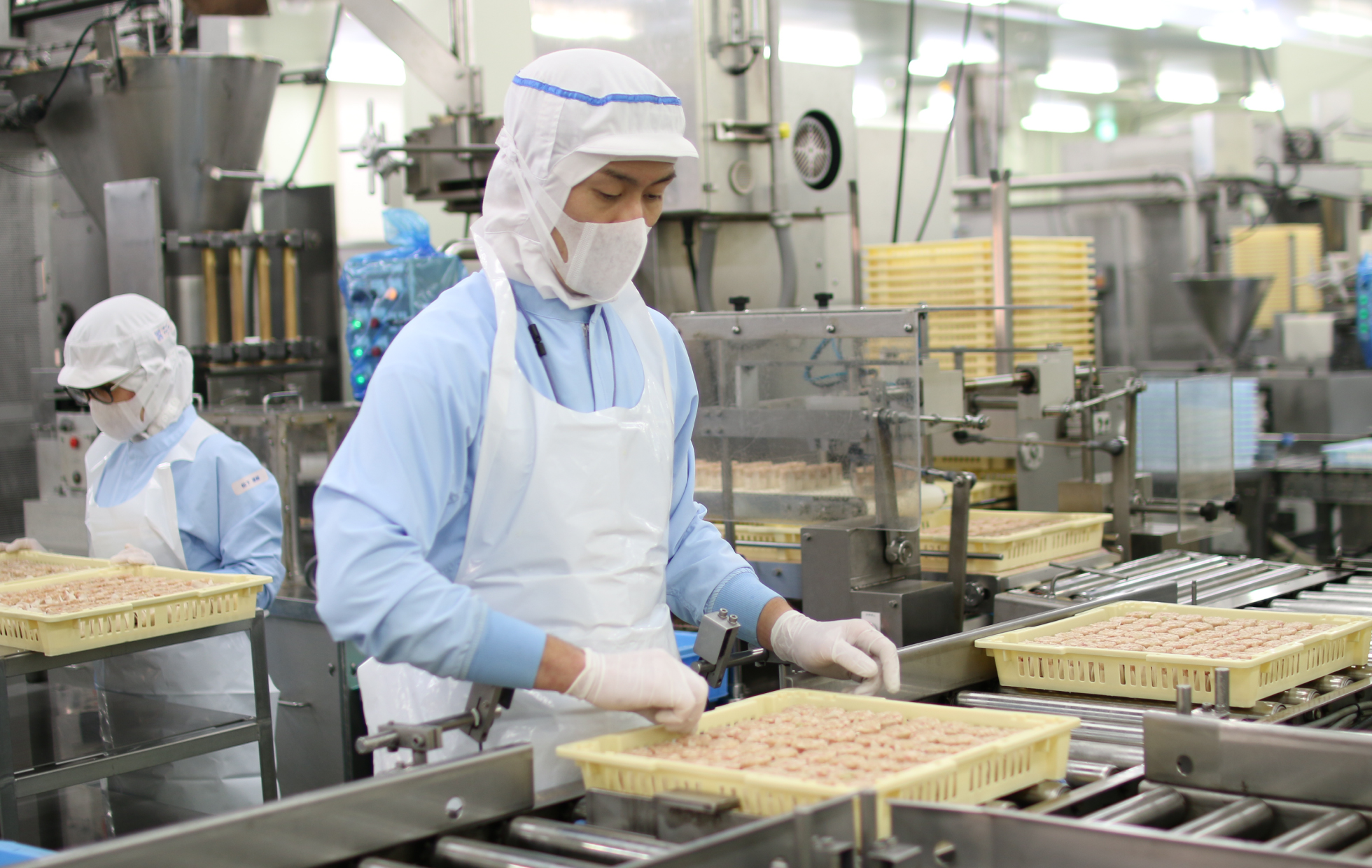 セントラルキッチン内の「製造一係」という部署で主任をしています。この部署では豚まんのカヤク(餡)や焼売、エビ焼売、餃子などの製造をしているのですが、私は主に玉ねぎカット、豚まんのカヤク製造、エビ焼売の製造を担当しています。普段は製造業務に従事しながら、役職者として適正な人員配置をおこなったり、商品や製造機器にまつわる管理などのマネジメント業務もおこなっています。また、4S(整理、整頓、清掃、清潔)を推進する活動に取り組んでいます。