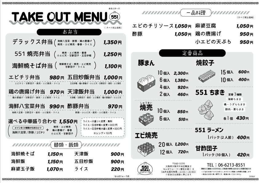 | 営業時間 | テイクアウト 10:00-21:30 イートイン 11:00-22:00(ラストオーダー21:30) お弁当 11:00-最終受付21:30 |